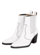 Ganni Stiefeletten weiss Verströmen Sie cooles Cowboy-Flair mit den Stiefeletten von GANNI. Typische Details wie die bogenförmigen Applikationen auf dem Spann, seitliche...