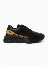 Glaze Turnschuhe, schwarz Modell: 'Glaze Trainer'.Der Dad-Sneaker in seiner Schlichtheit.Schwarze Turnschuhe in Leder mit Schnürung und braunem Leoparden-Ponyfell an...