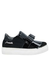 Schwarze Low Sneakers von Simonetta; Material: Leder; quadratische Spitze, Logo, Kalbsfell in Ponyfell-Optik, Schleife, Leder, Lack-Effekt, einfarbig.