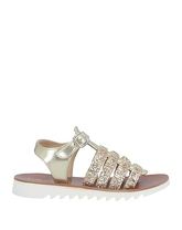 Goldene Sandalen von Laura Biagiotti Dolls; Material: Gewebefasern; ohne Absatz, einfarbig, Strass, Klettverschluss, Kunstleder, Perlen, runde Spitze.